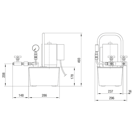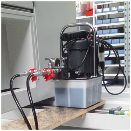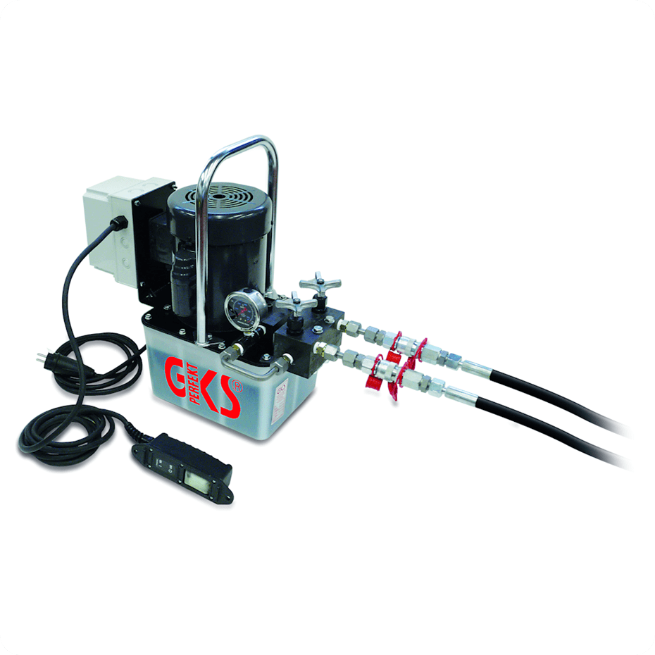 Wie PE und zusätzlich mit 2-fach Verteilerblock mit 2 Kupplungen und 2 Absperrventilen für feinfühliges Heben und Absenken