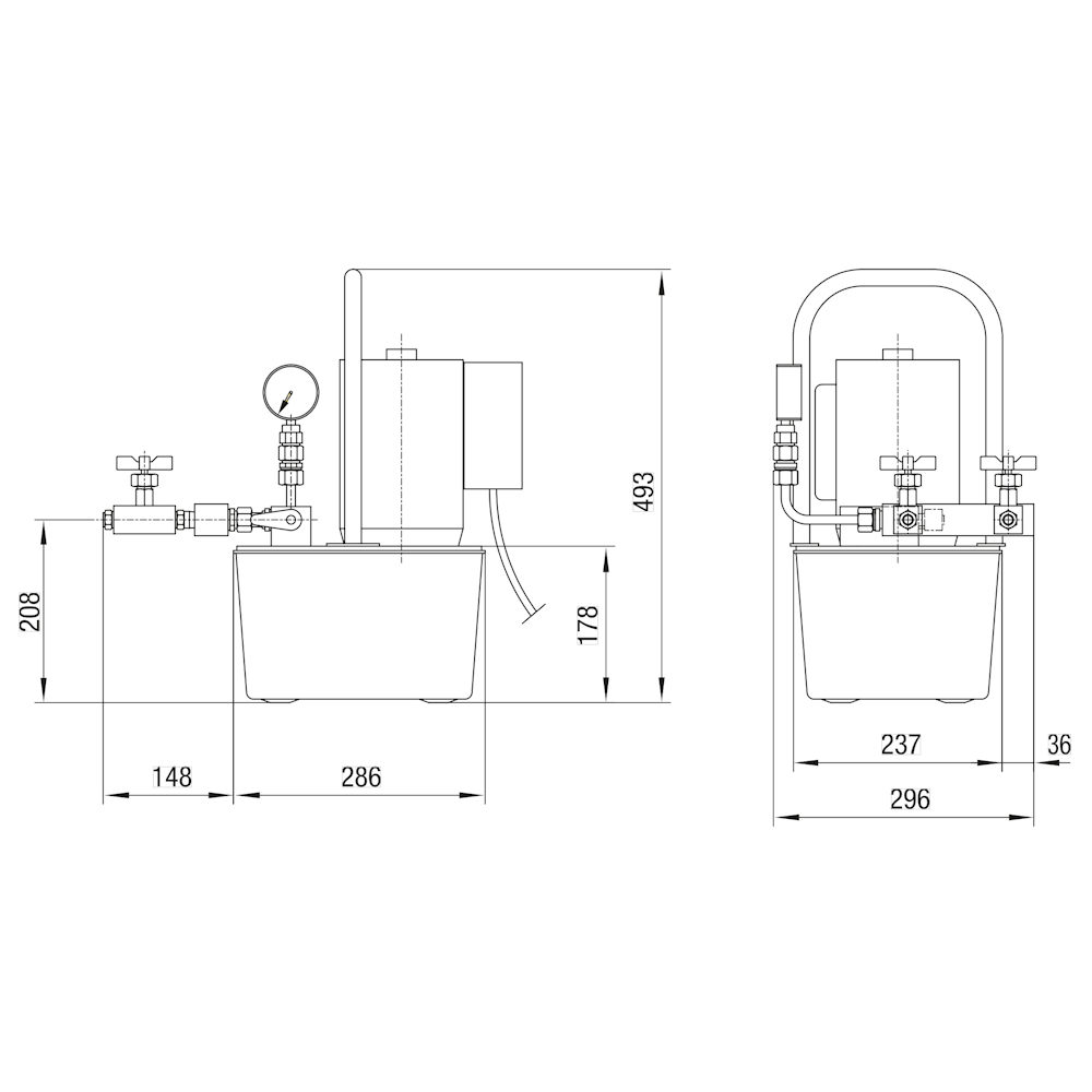 | Eigengewicht mit Öl (ohne Schläuche) | 36 kg |