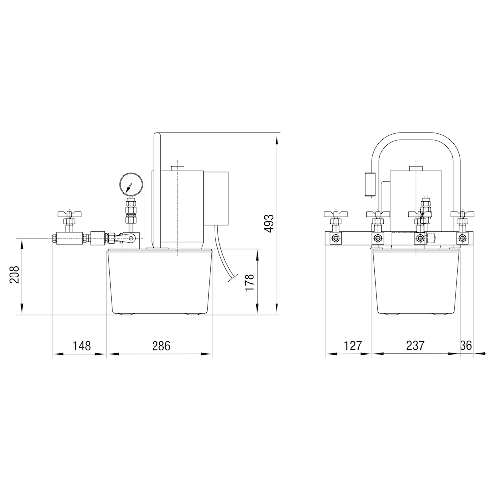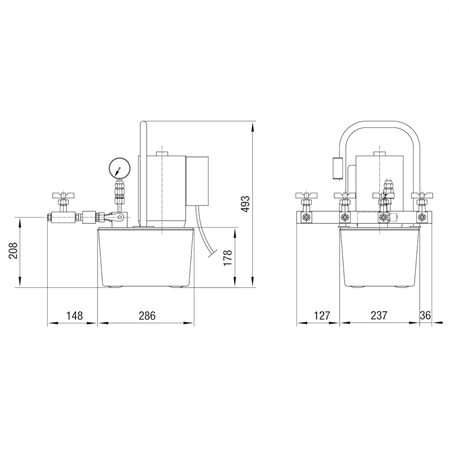 | Eigengewicht mit Öl (ohne Schläuche) | 45 kg |