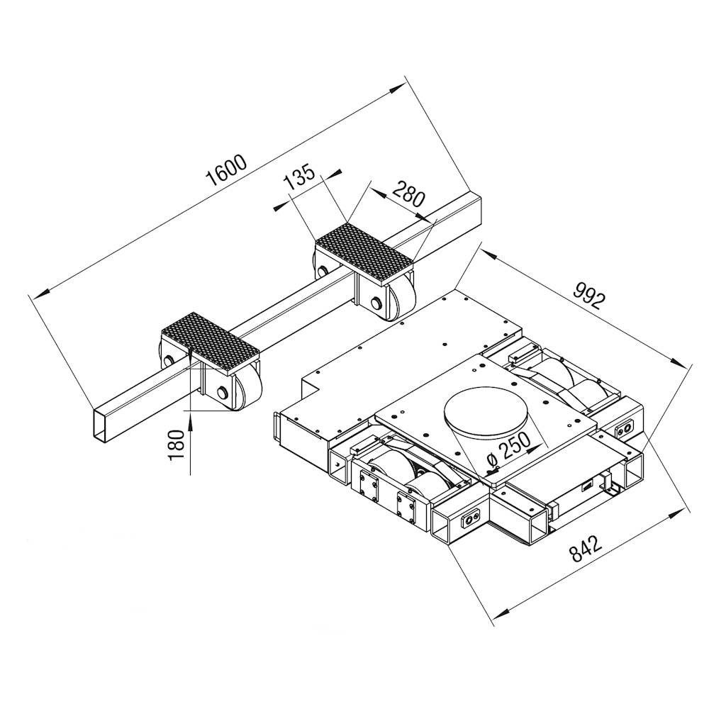 | Einbauhöhe / Zahl der Spezial-Lastrollen in mm | 180 / 4 (105 mm breit) | 180 / 4 (85 mm breit) |