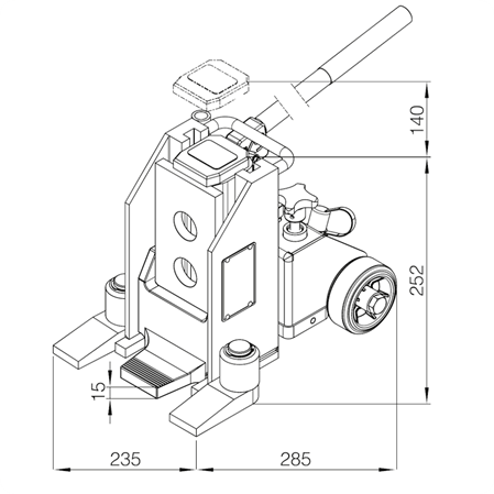Maschinen und schweren Lasten vorgesehen. Ein Sicherheitsventil verhindert das Heben von zu schweren Lasten. Optional kann der Heber auch mit der
