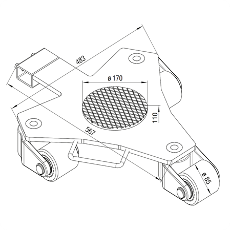 | Zahl der Rollen / Abmessungen mm | 3 / 85x85 |