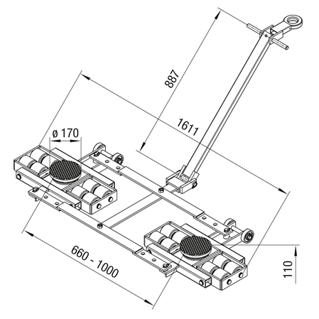 | Einbauhöhe in mm / Zahl der Rollen (85x85mm) | 110 / 16 (85x85mm) |